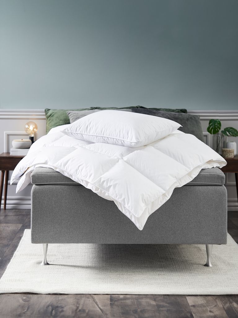 Lige tilpas varm og samtidig let. Eneste minus er bolsteret, som kunne være mere blødt. Men det bemærker man ikke, når først der er betræk på.