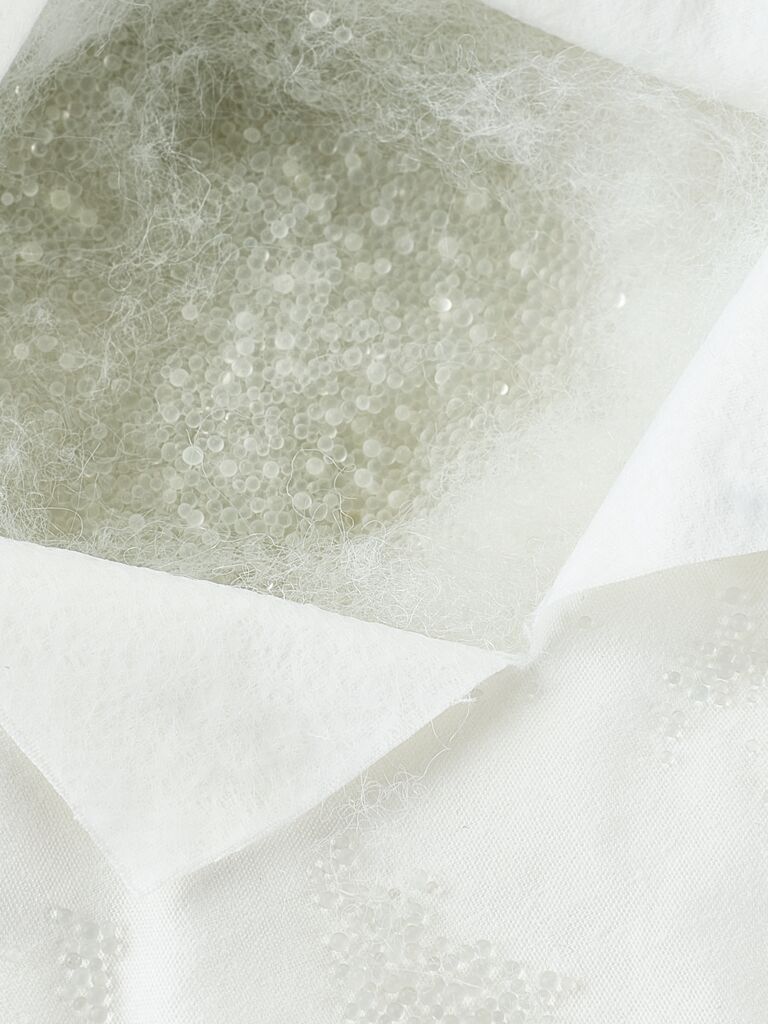 | Remplissage | Grâce à leur petite taille et à leur surface lisse, les billes de verre constituent un garnissage silencieux qui s'adapte facilement à vos mouvements. Le garnissage en fibres creuses de polyester siliconé léger assure l'isolation et la fibre Outlast régule activement la température. Le garnissage est réparti en sections pour assurer une pression uniforme. |
