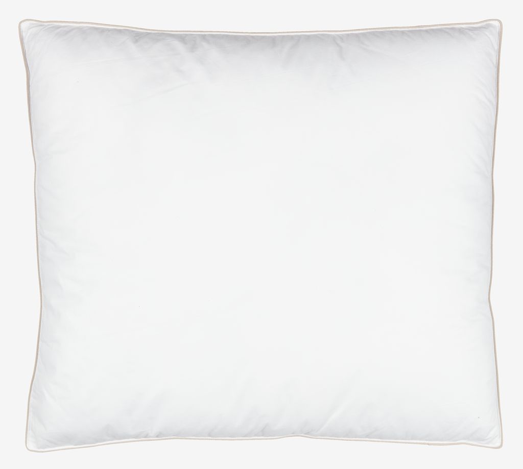 Oreiller 60x63/70 cm avec 3 compartiments et double passepoil qui permet de conserver sa forme et d'offrir un soutien uniforme. Garnissage 100% polyester dans les cloisons externes et 100% plumes de canard dans la cloison interne, 1360 g. Enveloppe 100% coton. Lavage à 60°C.