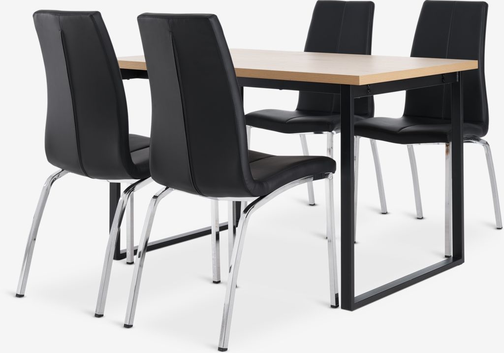 AABENRAA + HAVNDALAABENRAA L120 table chêne chaud + 4 HAVNDAL chaises noir