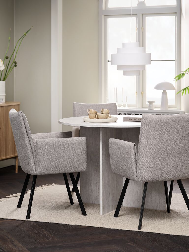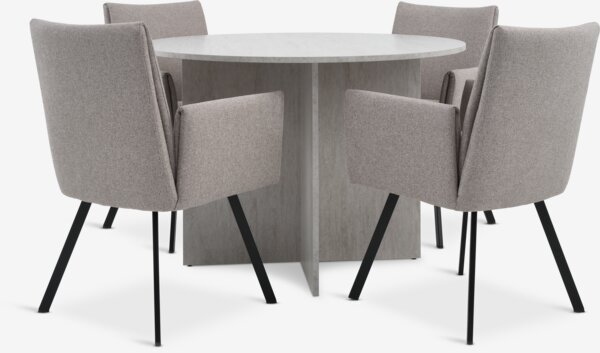 KRONDAL + GJESINGKRONDAL Ø110 table travertin + 4 GJESING beige/noir