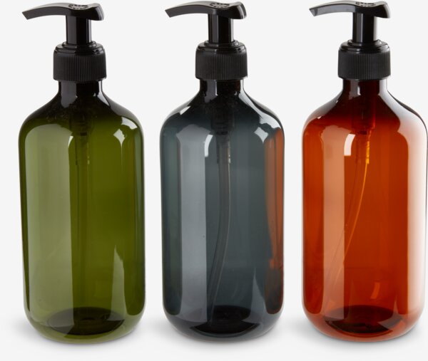 Fijne dispenser van stevig bruin plastic. Pompje werkt goed, ook het pompje ‘dicht’ en weer ‘open’ zetten gaat soepel zonder dat de inhoud er uitloopt.