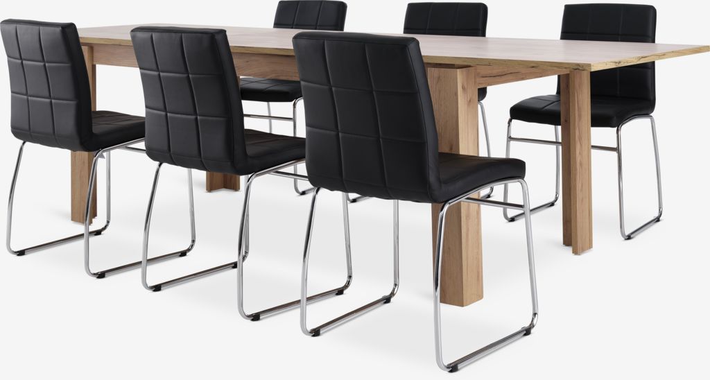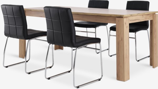 LINTRUP + HAMMELLINTRUP L190/280 tafel w.n.eiken + 4 HAMMEL zwart