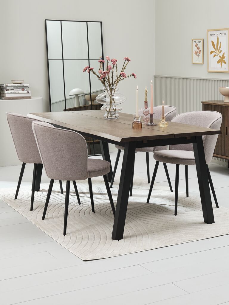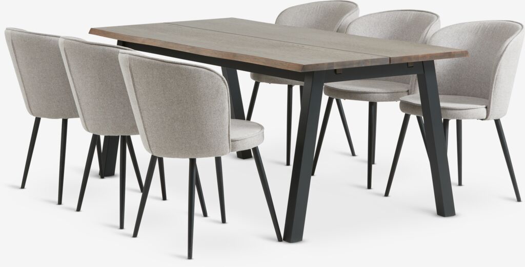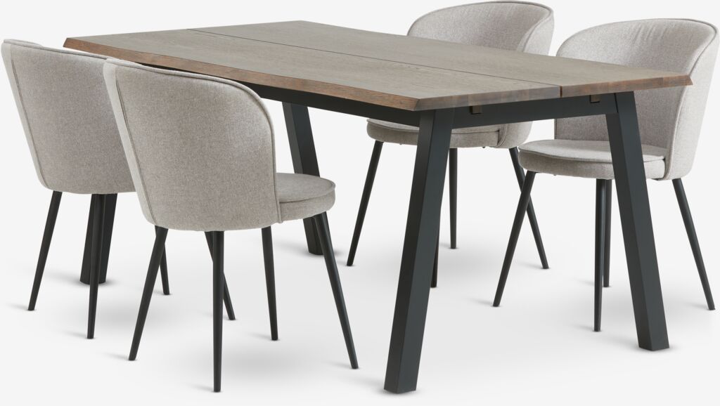 SKOVLUNDE + RISSKOVSKOVLUNDE L200 tafel donker eiken + 4 RISSKOV lichtgrijs
