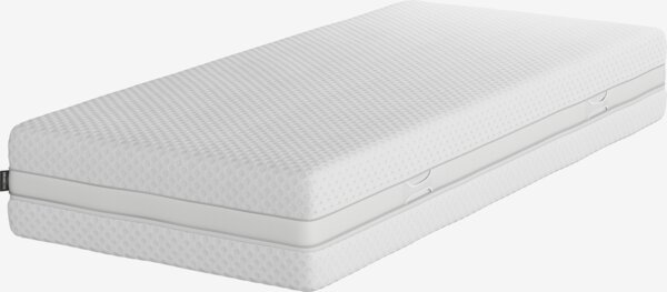 26 cm dikke schuimmatras 80x200 cm met 5 comfortzones voor een precieze, optimale ondersteuning. Kern van 21 cm polyetherschuim en 5 cm drukverlagend gelschuim, dat zich aanpast aan je lichaam en overtollige warmte afvoert. De matras heeft een flexibel gelrooster dat zich aanpast aan de rug en een diepe schouderzone creëert. Dit zorgt voor optimale ondersteuning als je op je rug of op je zij ligt. Wasbare tijk met polyethyleen aan één zijde, die een onmiddellijke, kalmerende verkoelende werking heeft.