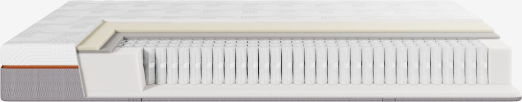 | Springveer laag 1 (van bovenaf) | 15 cm Elke pocketveer wordt beschermd door een stoffen zak, die een flexibele matras biedt, de duurzaamheid verhoogt en het geluid vermindert. |