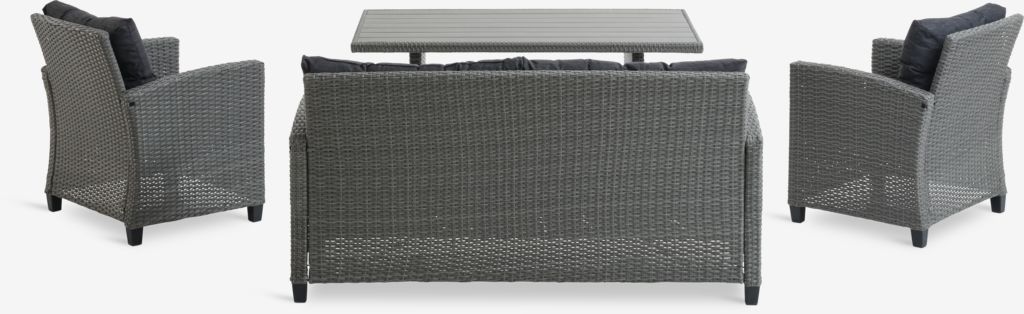 Bra loungeset till ett bra pris. Setet lämpar sig dock inte till att sitta att äta vid bordet, då bordet är alldeles för högt för medföljande soffa och fåtöljer. Hade varit bra om bordet var höj/sänkbart.