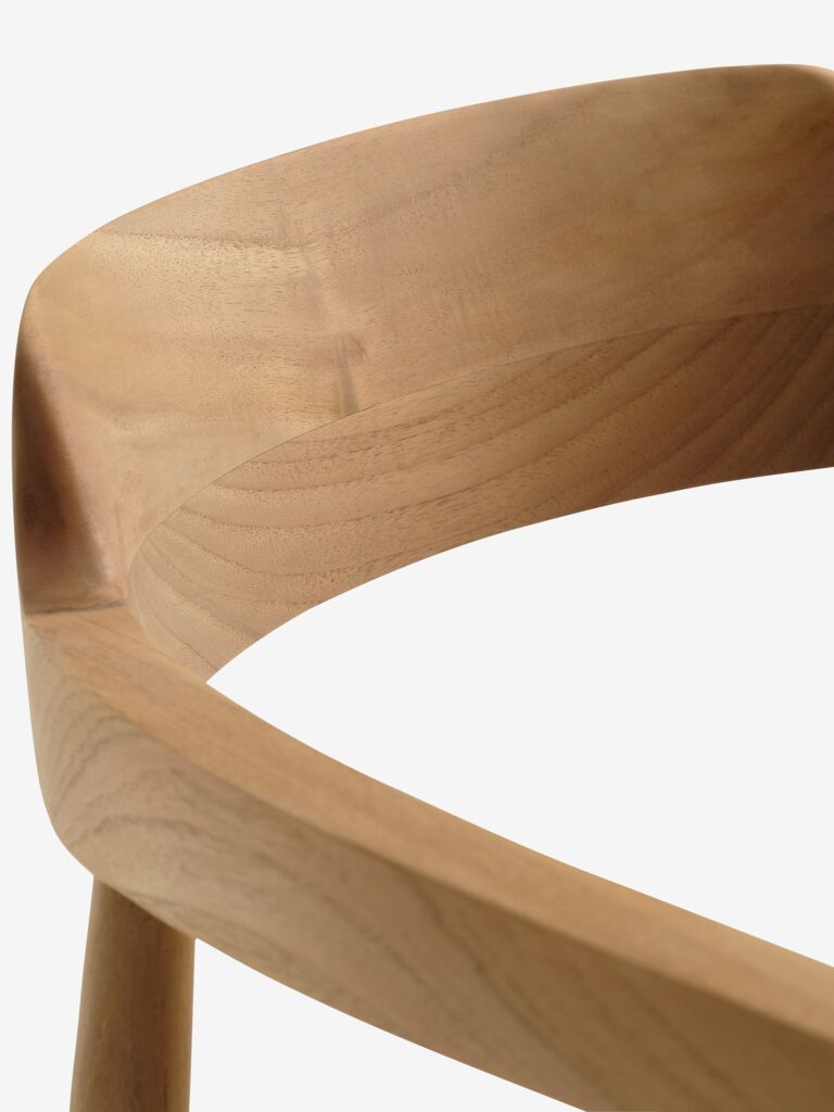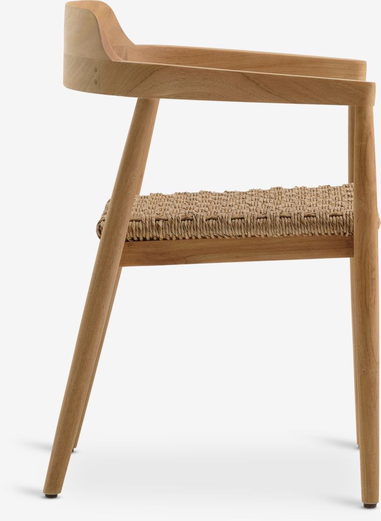 Tuinstoel met een zitting in polyrotan en een frame in massief FSC® teakhout. Polyrotan geeft een natuurlijk vlechtwerkuiterlijk, is weerbestendig en onderhoudsvrij. Teak is een elegante en duurzame hardhoutsoort met een hoog gehalte aan natuurlijke olie, waardoor vocht niet in het hout kan trekken. Na verloop van tijd krijgt teak een zilvergrijze patina.