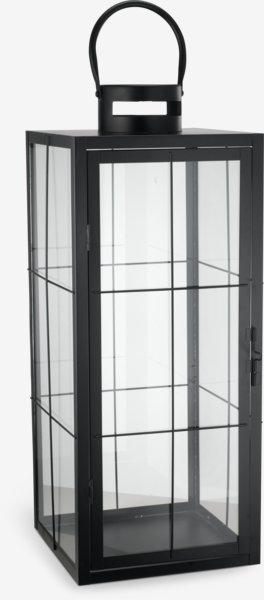 Lantaarn met een modern, rechthoekig design in zwart staal en helder glas. Het hoge frame is ideaal voor het plaatsen van een kaars om een gezellige sfeer te creëren op de vloer of op een tafel. B20 x L20 x H50 cm
